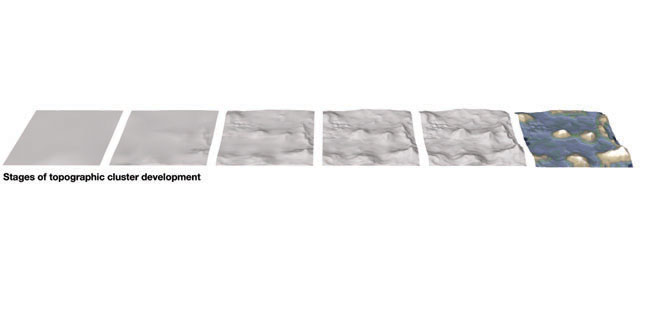 4. This visualization shows the dynamic formation of document clusters as a topography.